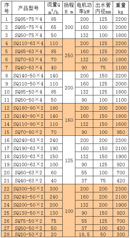 注:电压380/660V。标注*的是高浓度产品,允许浆体密度≤ 1300kg/m3 ,泥沙含量≤40%(重度比)。详细参数见电脑版。