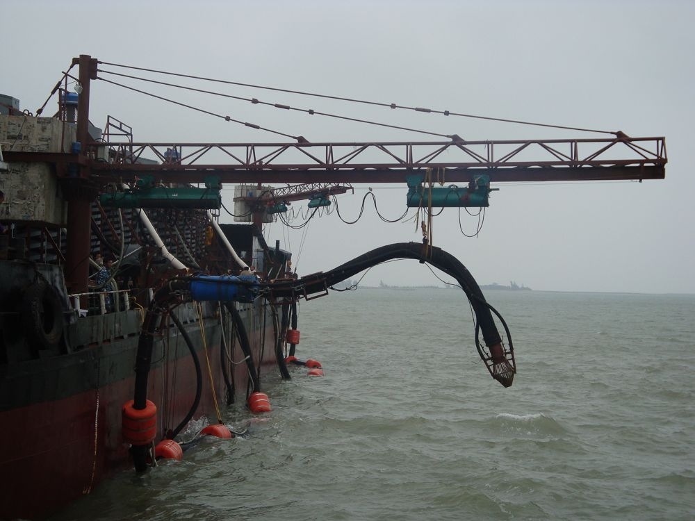 京帝公司南海采沙时遇到了水深问题。海水深30米左右,用放在船上的沙泵抽沙吸不上来,需要用排沙潜水泵放入水中抽沙。潜水泵的潜水深度是有要求的,不是想放多深就放多深。