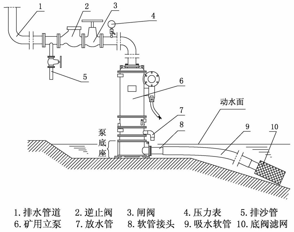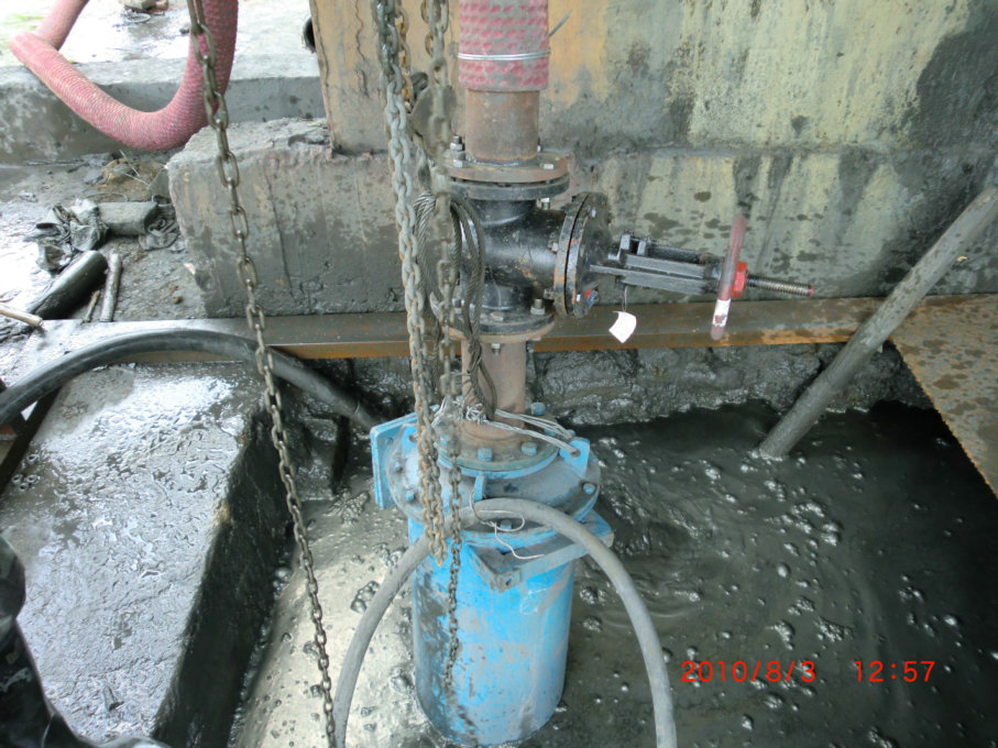 一般电厂的浓缩池清淤、煤矿选煤厂沉淀池清淤都属于这种工况,还有矿井清水仓也属于这种工况。这些工况在清理水池时可以直接用排沙潜水泵吊装,放入水池直接排泥沙,注意不要一下子放到底,这样容易将潜水泵插到泥里,下放时注意监控压力表或电流表。
